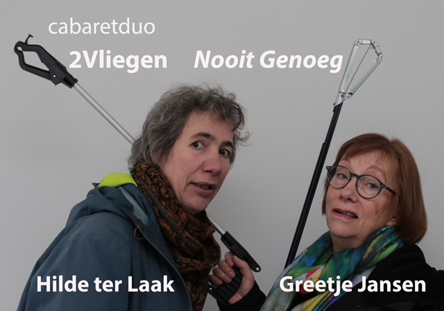 Hilde en Greetje maken als 2Vliegen al een tijdje cabaret. Hun huidige programma heet Nooit Genoeg, maar duurt 70 minuten. Nooit Genoeg is 4 keer in 2024/2025 in Den Haag gespeeld, en daarna geschud en bewerkt, onder het mom ‘nieuw, nu nog beter!’ Het is tijd om elders in het land de vleugels uit te slaan. Wie geeft er wind onder de vleugels?