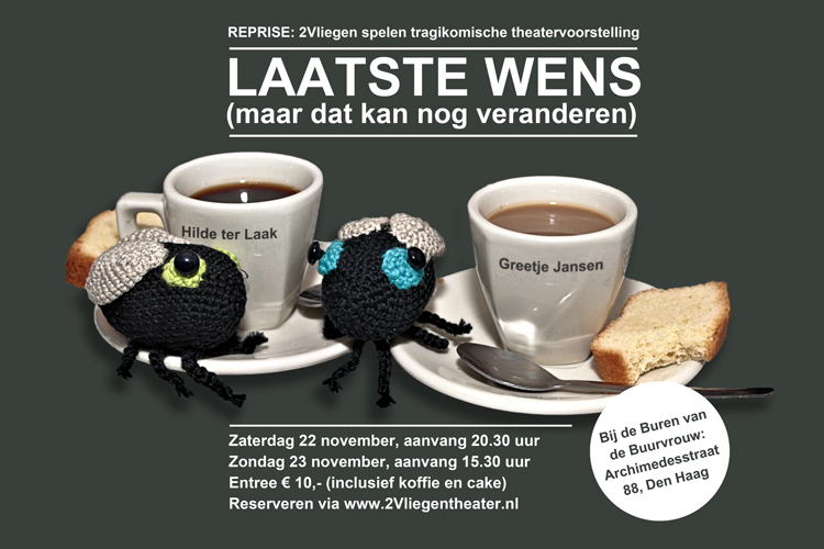 LAATSTE WENS (MAAR DAT KAN NOG VERANDEREN) is gespeeld in Den Haag, Leiden, Amsterdam en Den Hoorn.